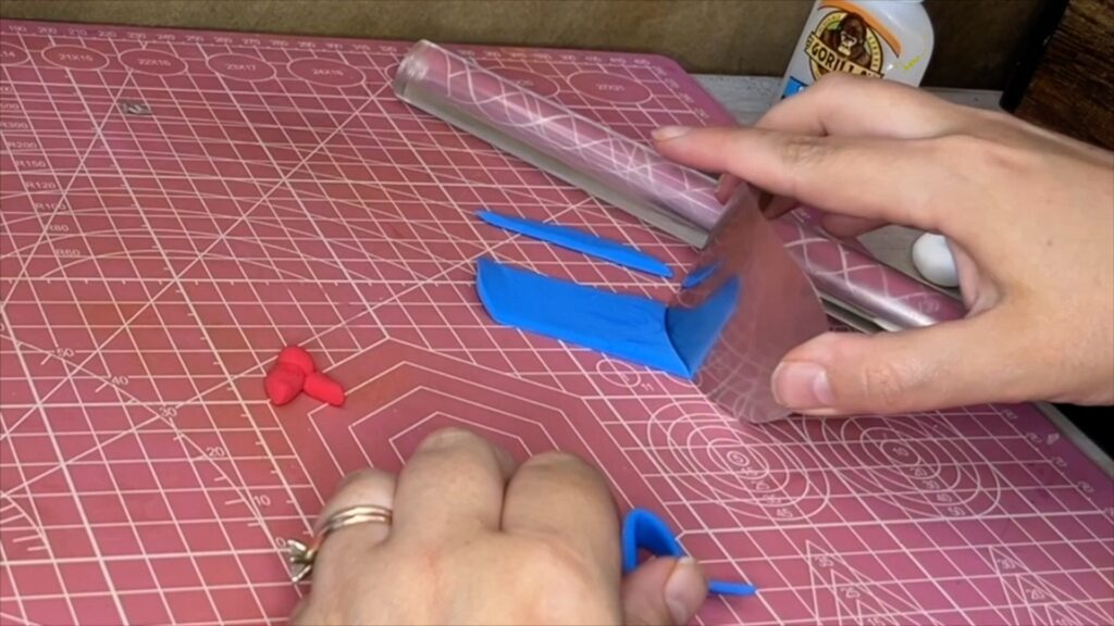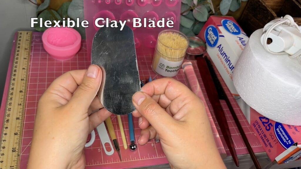 This is a flexible clay blade. It’s great to just make straight cuts, but it can also help with curved cuts. For example, I created the bandana for the Stay Puft using this blade.