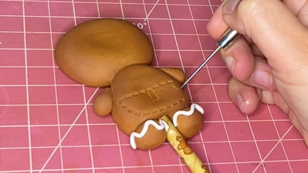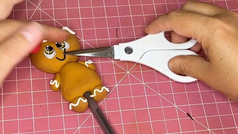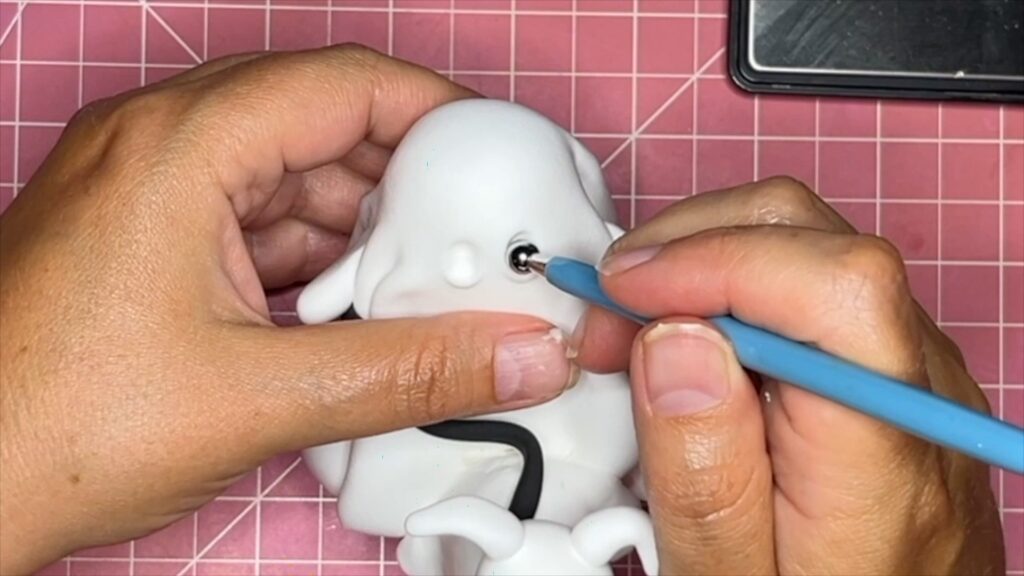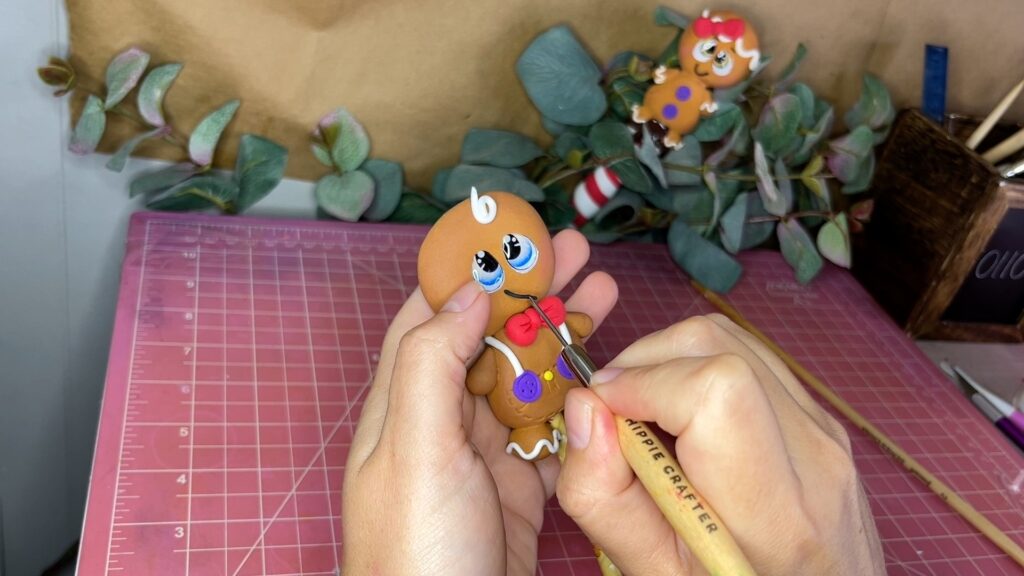 or you can pick up small details and place them where they should go. You can also use a pointy tool to make very small dots or eyes, applying acrylic paint.