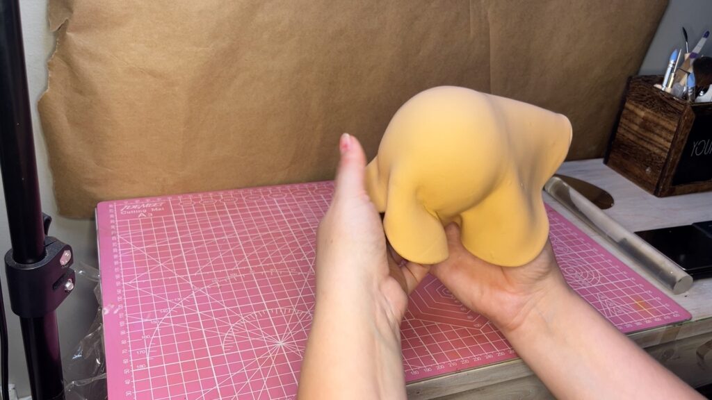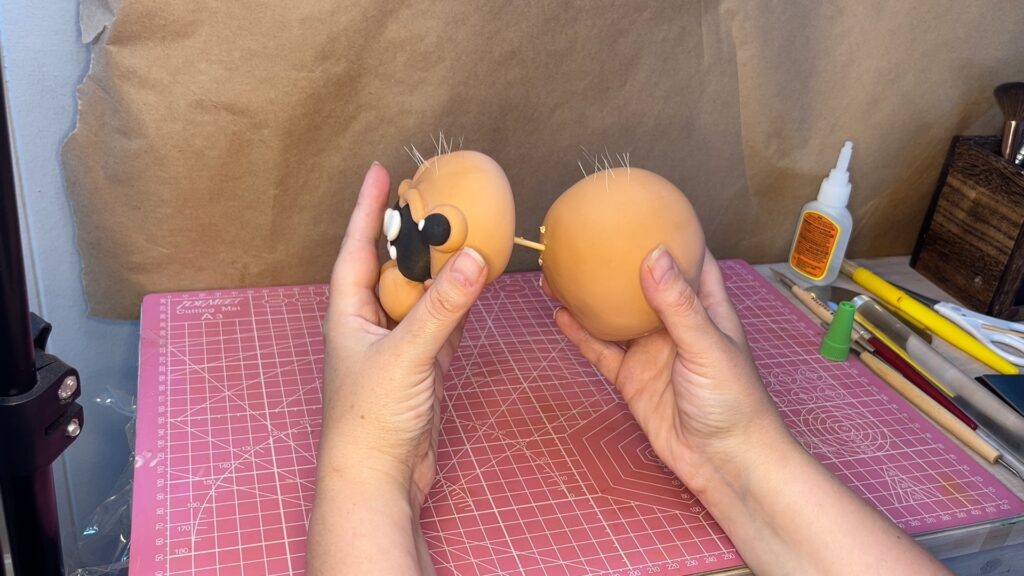 Let your head dry for 24 hours before you attach it. This helps prevent squishing and misshaping anything during the assembly process. Let it dry laying on its back side.