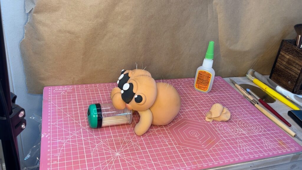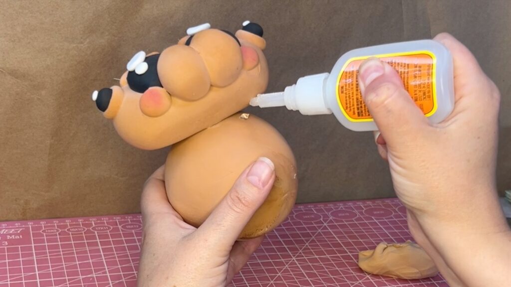Often, I use glue to connect two pieces. I noticed that the glue I use, Gorilla Gel, makes the foam clay lighter and almost looks like it bleaches the area it touches. If the gap is closed and no extra glue seeps out, it’s not a problem. However, it becomes an issue when you use too much glue, and it seeps out, leaving visible marks. It’s also a problem if the gap opens up because it was lacking a little support during drying time. So use it sparingly you really dont need much. I will be testing other glues that might be less visible because I tend to overuse it since I worry that parts might fall off.