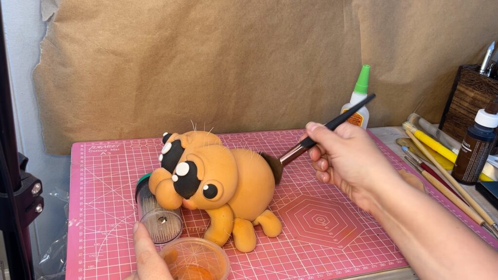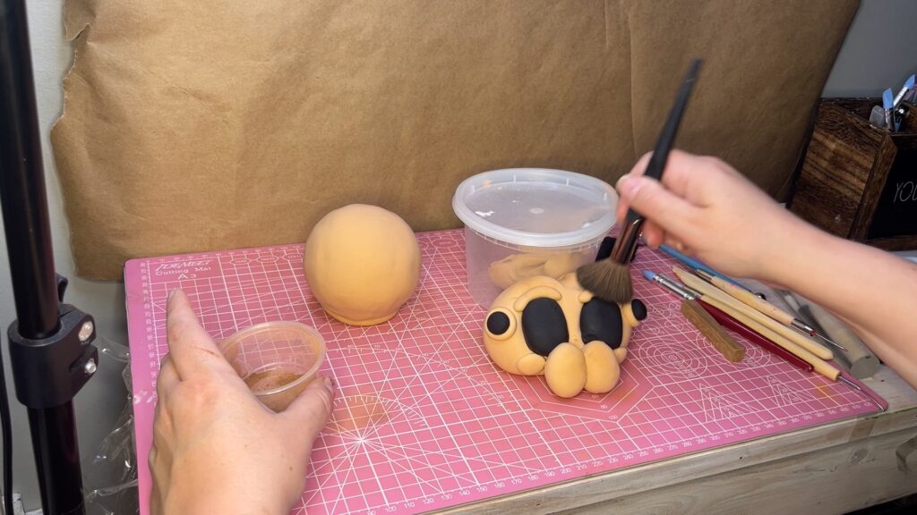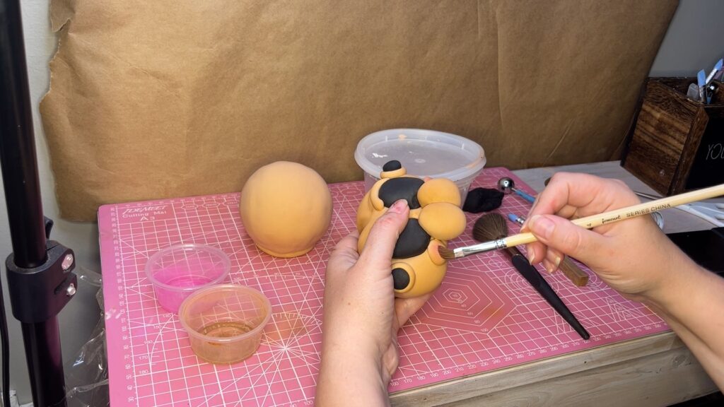 Color at least 200g of clay brown using gel food colors. Do one good squirt and then just a drop at a time until you have a medium brown. Dont worry if it is pale, we will shade with brown pastels which makes the color pop and is long lasting.